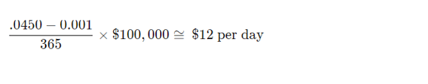 The exact result will not be $12. Because your banks will chart overnight interest rates, and that's why they fluctuate daily.